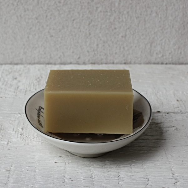 Do tohoto bleďounce zeleného mýdla je k umocnění působení přidaná ještě levandule, heřmánek, myrta, bergamot a moravský, za studena lisovaný olej z peciček hroznů.