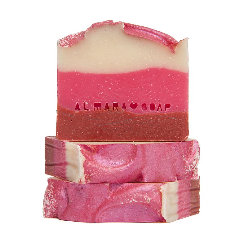 Mýdlo obsahuje vysoký podíl pečlivě namíchaných rostlinných olejů, které zaručují velmi jemné, hebké mytí a pokožku zanechají vláčnou, vyživenou a nevysušenou. O krásnou barvu mýdla se postaraly minerální barviva a oxid zinečnatý.
