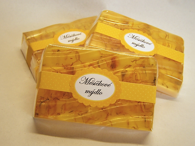 Glycerinové mýdlo s měsíčkovými okvětními lístky.