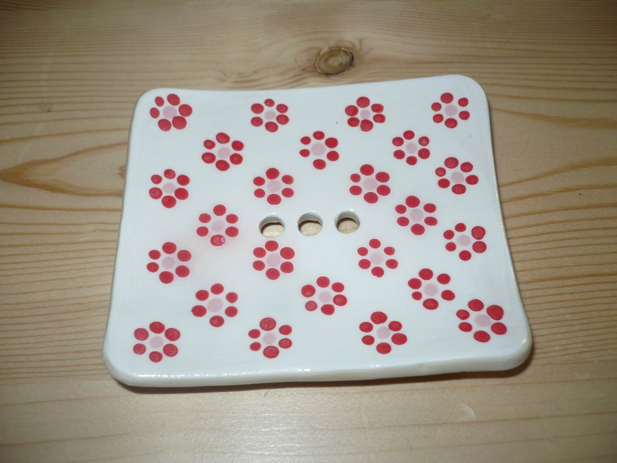 Roztomilá keramická mýdlenka je na malých nožičkách a má tři dírky na odtékání vody.