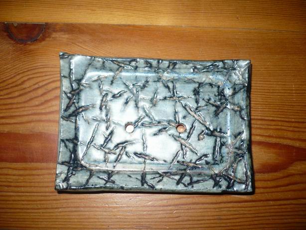 Keramický mýdelník s originálním dekorem je na malých nožičkách a má dvě dírky na odtékání vody. Rozměr 8 x 12 cm. Každá mýdlenka je originál a může se od obrázku trochu lišit.